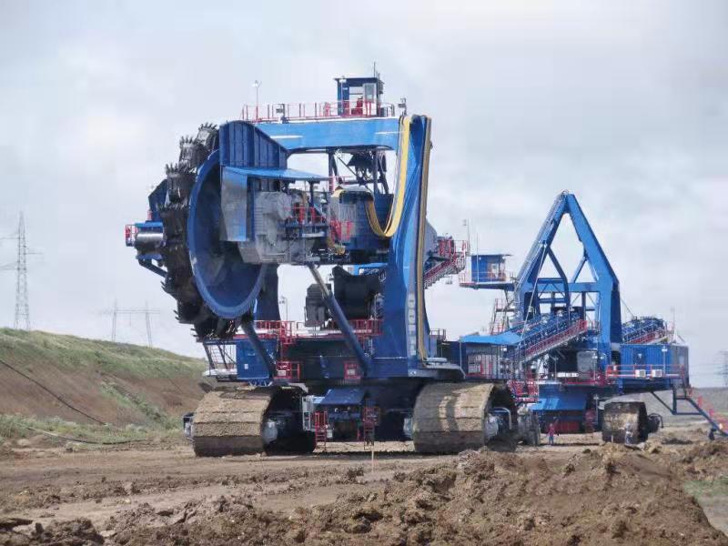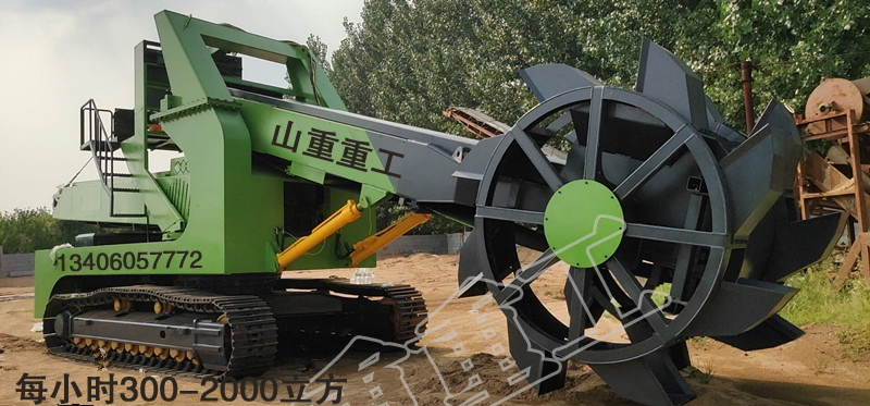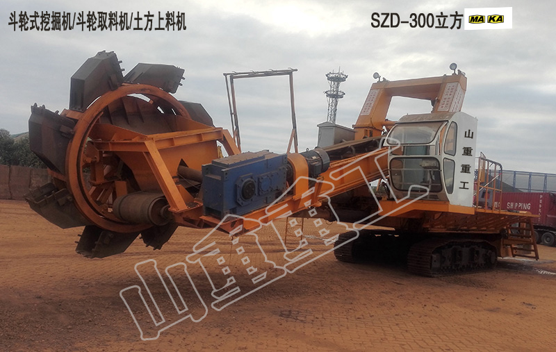 履帶行走斗輪式挖掘機(jī)/斗輪取料機(jī)是一種利用裝于動(dòng)臂前端轉(zhuǎn)輪上的多個(gè)鏟斗連續(xù)挖掘的多斗挖掘機(jī)。用于大量土方的挖掘、 礦場(chǎng)的剝離和采掘以及大型料場(chǎng)的裝卸作業(yè),生產(chǎn)率高、挖掘力較大,可直接挖掘較堅(jiān)硬的土壤。在大型建筑、水利工程和礦場(chǎng)中,常與運(yùn)輸設(shè)備等配套,組成連續(xù)作業(yè)線。斗輪挖掘機(jī)按生產(chǎn)率或機(jī)重分小型、中型、大型、特大型和巨型。大型以上斗輪挖掘機(jī)挖掘力大,常用于采礦。輪斗挖掘機(jī)是在鏈斗挖掘機(jī)、單斗挖掘機(jī)和其它采掘設(shè)備的基礎(chǔ)上逐步發(fā)展起來的,是目前連續(xù)化作業(yè)設(shè)備中比較理想的一種多斗挖掘設(shè)備,也是目前世界上最大成套挖掘設(shè)備之一。